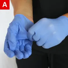 1. Grip the outside of one glove near the wrist  (Figure 5a).